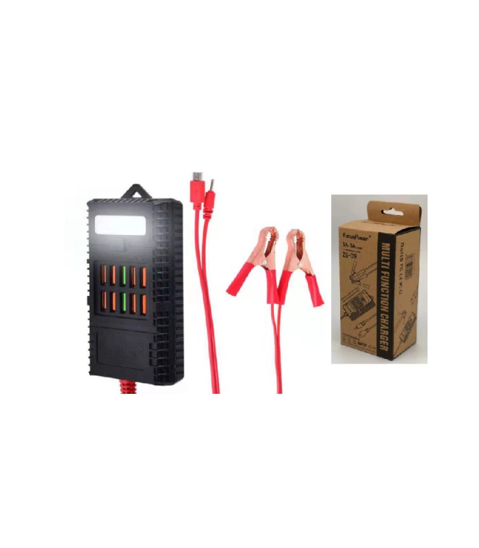 Портативный HUB ZS-09/2 с крокодилами на 10*USB2.0 (3A-5А), led, питание 12В, Black, Box