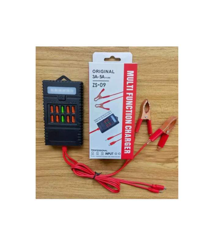 Портативный HUB ZS-09-2 с крокодилами на 10*USB2.0 (3A-5А), led, питание 12В, Black, Box