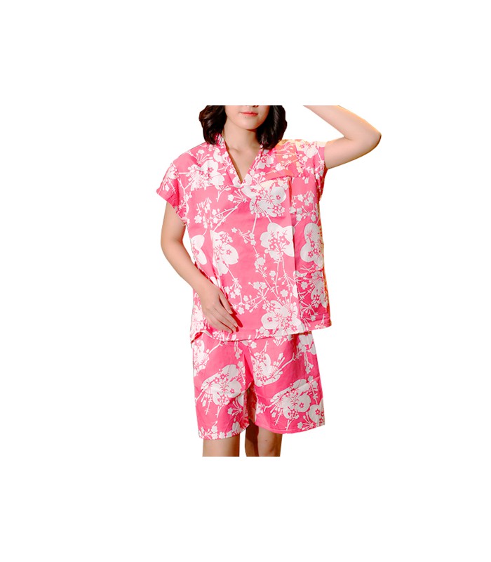 Женский банный костюм с коротким рукавом в розовом цвете.