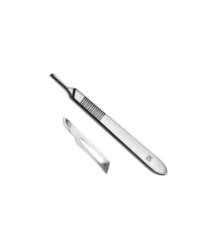 Этот набор включает в себя скальпель из нержавеющей стали с номером 3 и лезвие с номером 12.