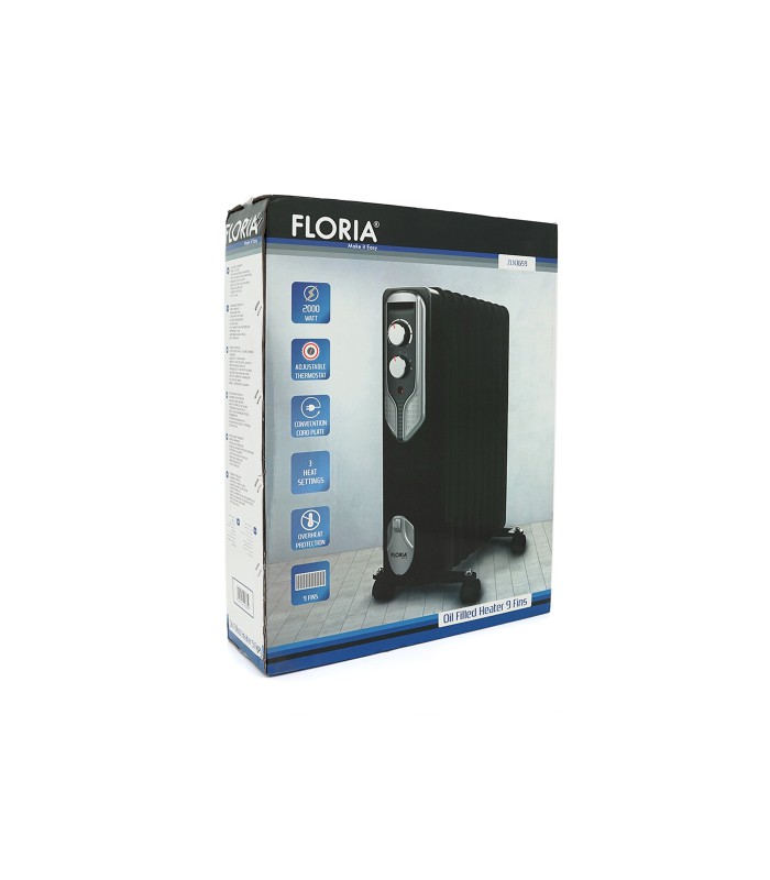 Масляный обогреватель Floria ZLN 3659 имеет 3 режима мощности 800Вт/1200Вт/2000 Вт, не высушивает воздух, надежный и безопасный, оснащен термостатом, с помощью которого можно точно установить желаемую температуру, обеспечивает высокую тепловую эффективность и гарантирует равномерное распределение тепла.