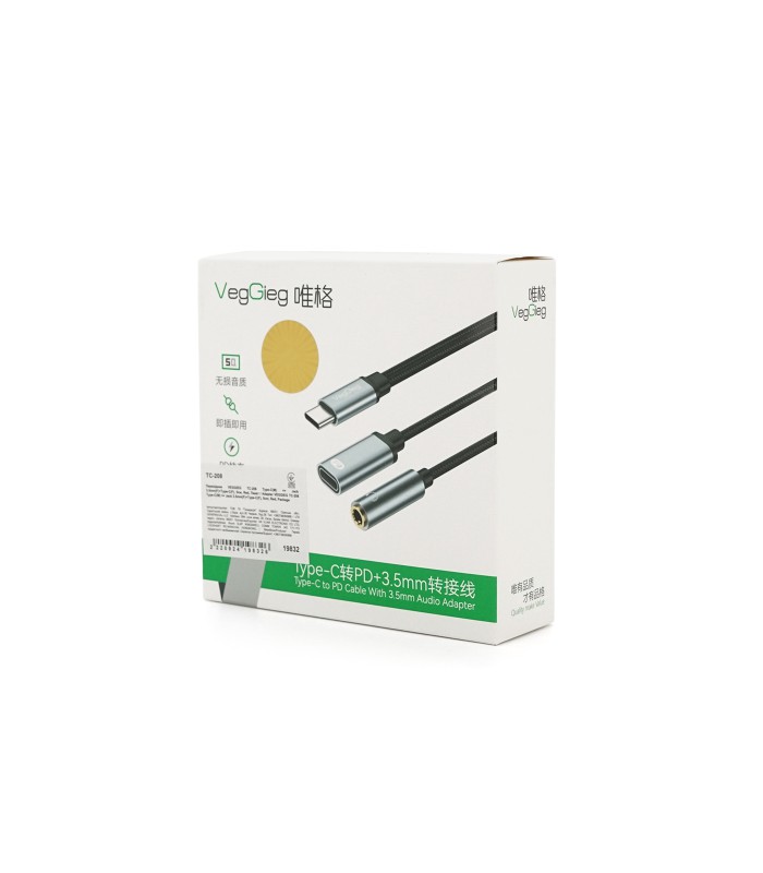 - Тип разъема: Type-C(M) =>, Jack 3.5mm(F)+Type-C(F)