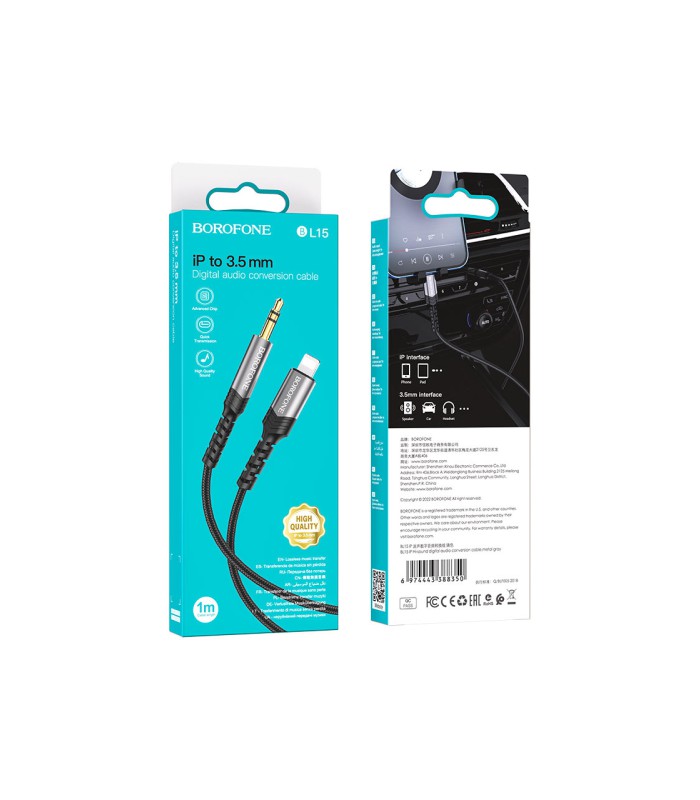 Кабель Borofone BL15 DC3.5 (папа) &gt, Lighting (папа), круглый, 1м, Gray, Box