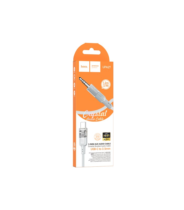 Кабель HOCO UPA27 DC3.5 (папа) &gt, Type-C (папа), круглый в оплетке, 1.2м, Gray, Box