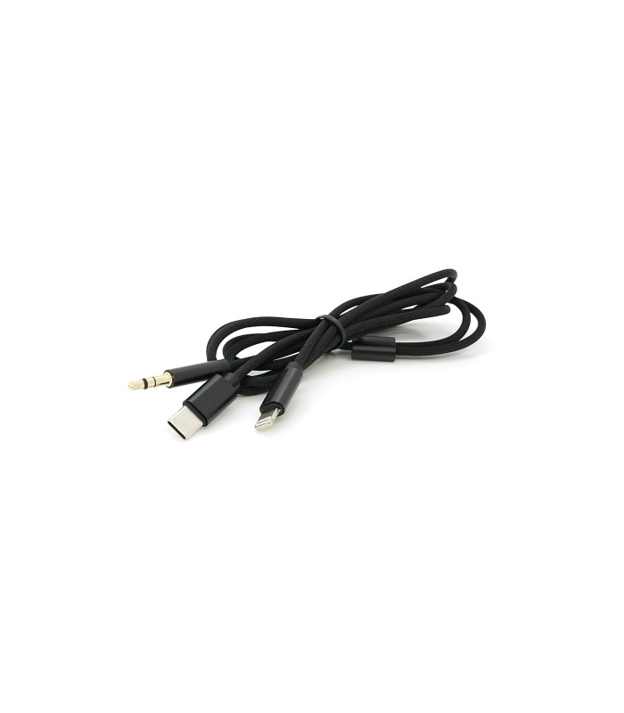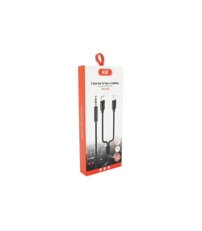 Переходник KIN KY-233 Jack 3.5mm(M)&gt,Type-C(M) +Lighting(M), 110см, Black, Box