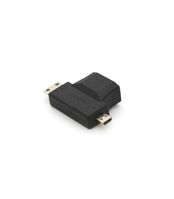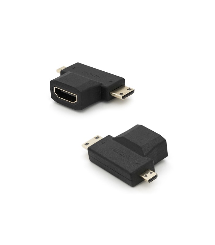 Переходник mini HDMI(папа) - micro HDMI(папа) - HDMI(мама) - многофункциональный высококачественный переходник, который поможет быстро подключить твои любимые гаджеты к телевизору или монитору с HDMI. Позолоченные разъемы и контакты переходника обеспечивают отличное качество передачи сигнала без потерь.