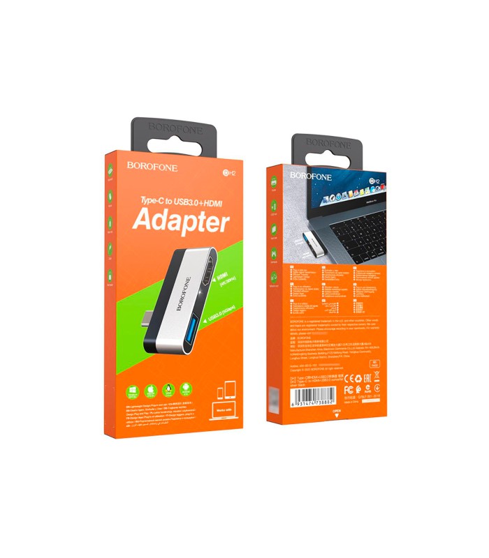 Переходник BOROFONE DH2 Type-C(Male) - USB3.0+2*HDMI, черный, в упаковке.
