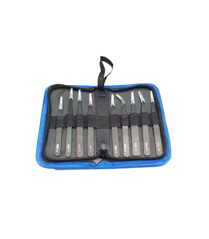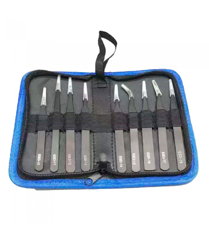 Набор пинцетов в холдере состоит из 9 штук инструментов ESD 10-18.