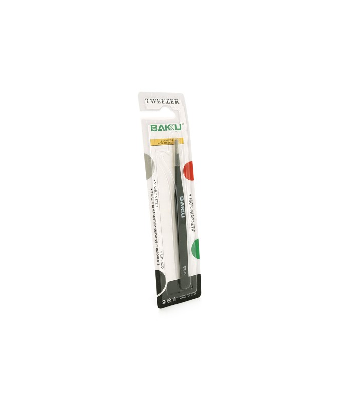 Пинцет прямой BAKU BK-11ESD с черным антистатическим покрытием - это инструмент, предназначенный для точной и аккуратной работы со взаимодействующими электрическими компонентами.