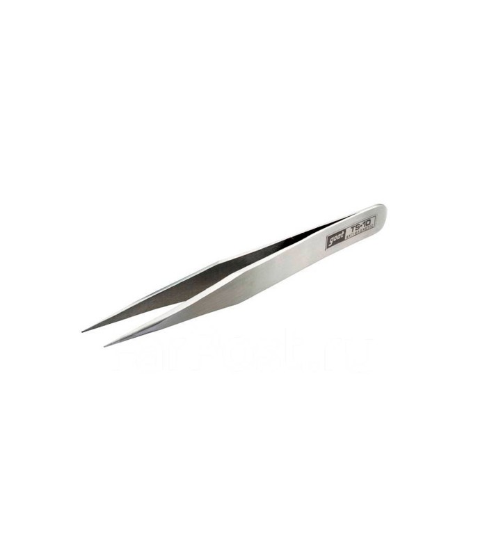 TS-10 антимагнитный - радиомонтажный прямой усиленный пинцет с острыми кончиками. Губки пинцета без насечек. Выполнен из нержавеющей стали, антимагнитный, устойчивый к кислоте.