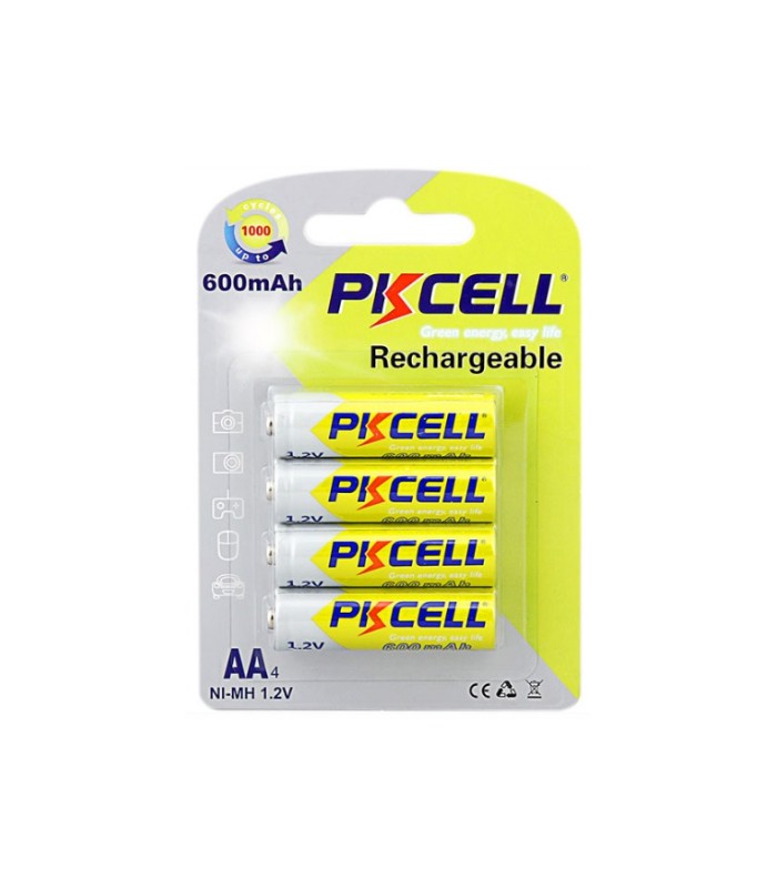 Аккумулятор PKCELL 1.2V AA 600mAh NiMH Rechargeable Battery, 4 штуки в блистере цена за блистер, Q12
