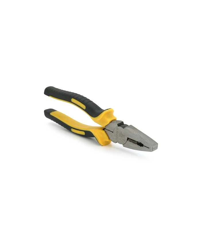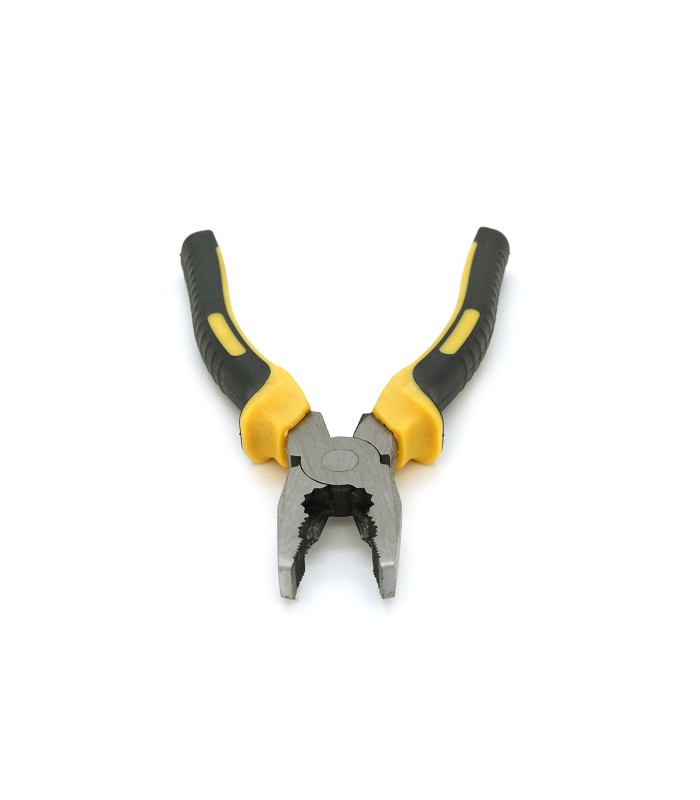 Плоскогубцы с черно-желтыми ручками размером 200х8 мм, упакованные в блистер.