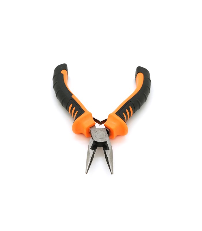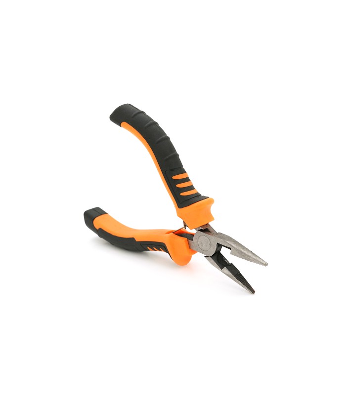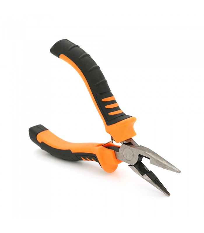 Длинногубцы с серо-оранжевыми ручками, длиной 125 мм и массой 55 грамм.