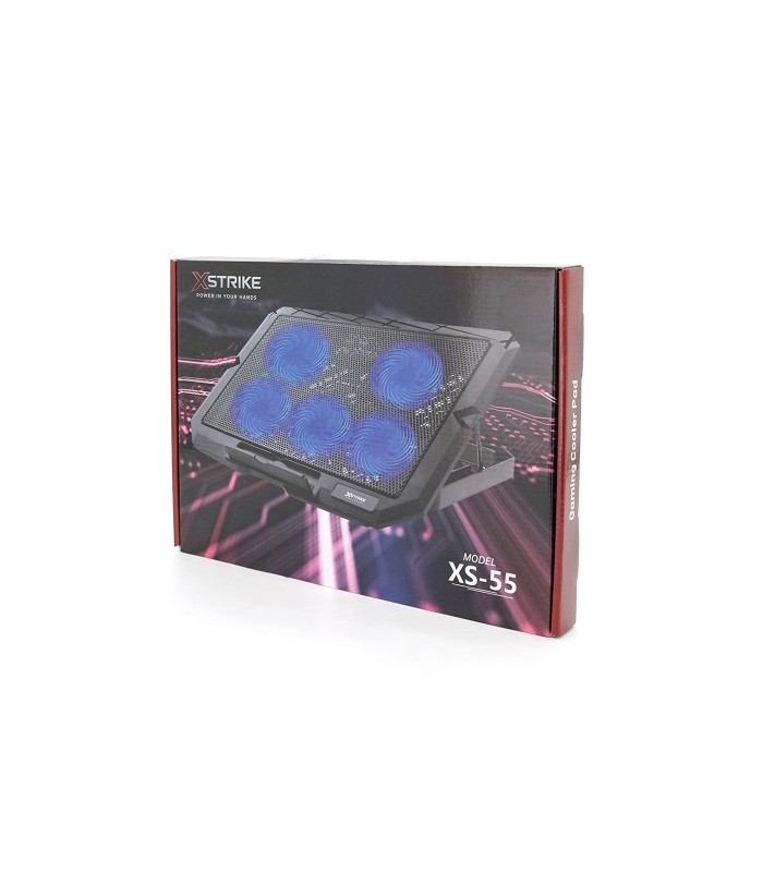 Подставка под ноутбук XSTRIKE XS-55, 10-17', 5*70mm 2200±10% RPM, корпус пластик+алюминий, 2xUSB 2.0, 356x259x28mm, RGB, Box Q20