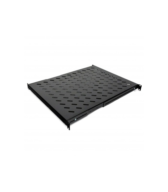 Перфорированная полка 19' с 4 точками крепления, глубиной 400 мм и толщиной металла 1.5 мм, цвета черный.