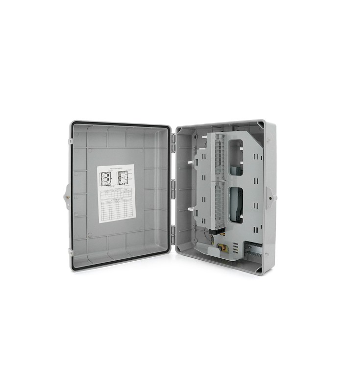 Коробка сочетает вместительность и надежность, упрощая монтаж и обслуживание оптических сетей. Подходит для монтажа на стенах или в специализированных шкафах.