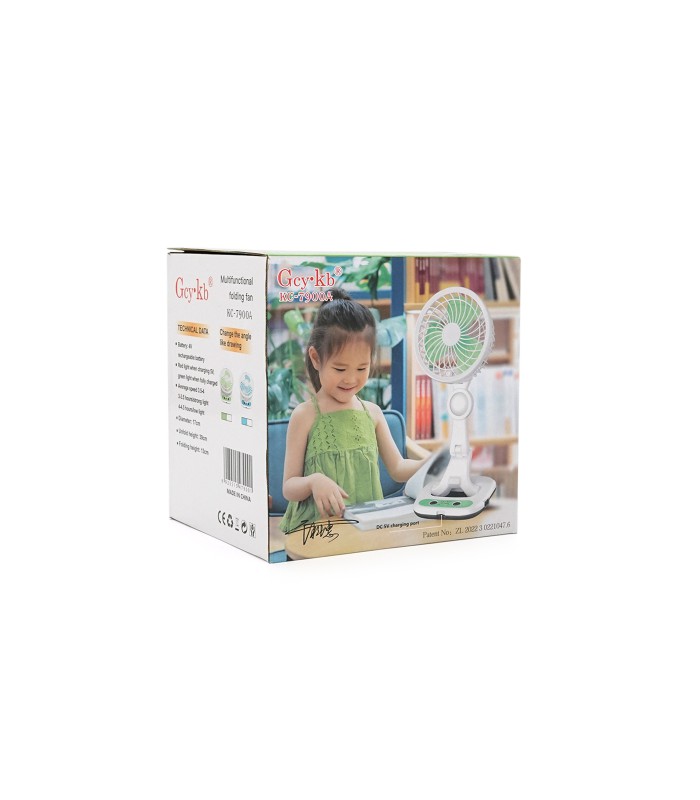 Портативный настольный вентилятор KC-7900A, R*160мм, 2 режима, фонарь, питание от аккумулятора 18650 ( вкомплекте только 1шт), U