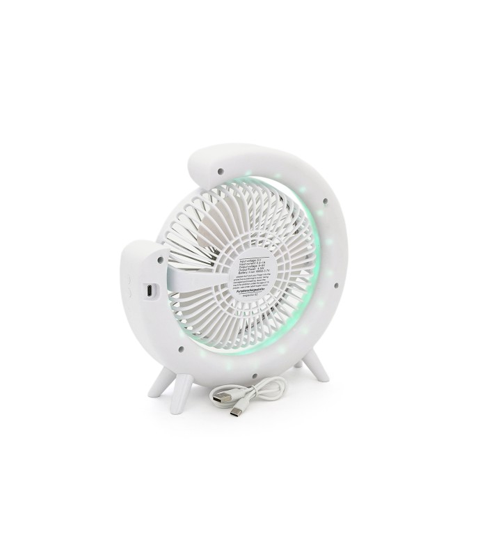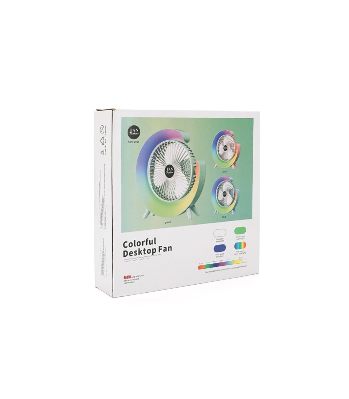 Портативный настольный вентилятор YT-1713, R-160mm, 3 режима скорости+5 режимов подсветки, встроенный аккум, Mix Color, Box