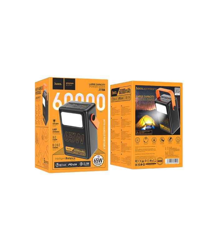 Power Bank HOCO J110A 60000mAh, 4USB+Type-C, 65W+PD20W, фонарик, Black, 1.26kg