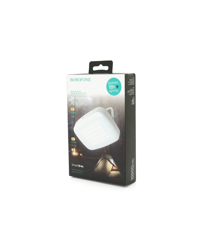 Power Bank Borofone DBT07 10000mAh+LED фонарь, 2USB+Type-C, 18W, White, 0.31kg