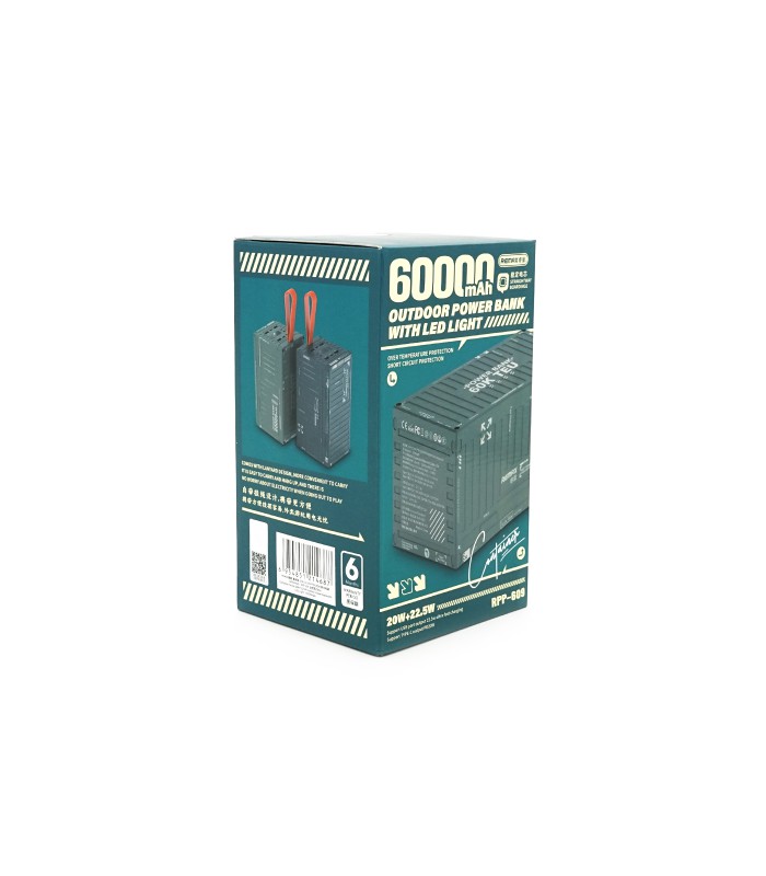 Power Bank Remax RPP-609 60000mAh, PD 20W+QC 22.5W, Gray, 1.275kg