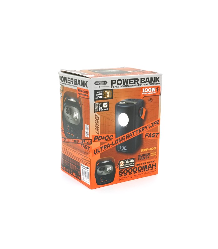 Power Bank Remax RPP-100 60000mAh, PD 100W+QC 22.5W, Blue LCD, 1.46kg