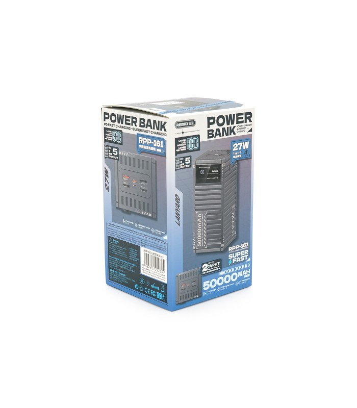 Power Bank Remax RPP-161 50000mAh, PD 27W+QC 22.5W, Gray, 1.054kg
