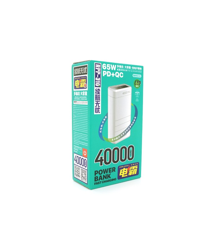 Power Bank Remax RPP-310 40000mAh, 65W QC+PD, USB+Type-C, LED индикация, 0.92кг, Box