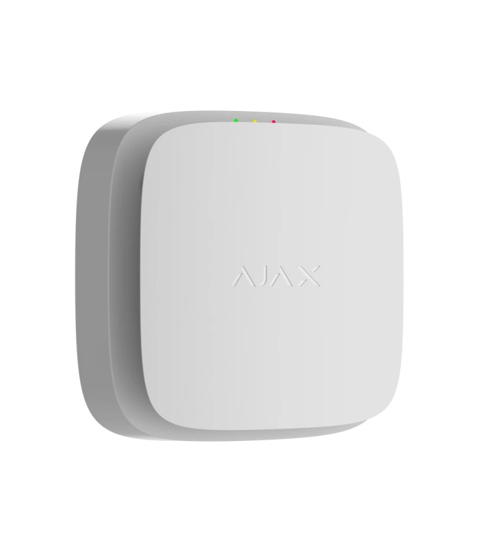 EN54 FireProtect (Smoke) Jeweller – это беспроводной адресный пожарный извещатель, сертифицированный по стандарту EN 54, предназначенный для обнаружения дыма в помещениях. Обеспечивает круглосуточную защиту, работая 24/7 вне зависимости от режима охранной системы Ajax. Интегрируется в систему Ajax, обеспечивая надёжную связь с приёмно-контрольным пожарным прибором (ППКП) через защищённый радиопротокол Jeweller на расстоянии до 1700 метров без помех. Двухспектральный оптический сенсор, комбинирующий синий и инфракрасный светодиоды, точно определяет задымление, анализируя размер частиц камеры дыма. Программный алгоритм HazeFlow 2 дополнительно проверяет данные во избежание ложных тревог. Камера дыма защищена от пыли, грязи и насекомых, что обеспечивает стабильную работу без необходимости частого обслуживания. Устройство передает события (пожарная тревога, неисправность сенсора, опыление камеры, низкий заряд батареи, срабатывание тампера) через приложение Ajax PRO Desktop или на пульт централизованного наблюдения (SurGard, SIA, ADEMCO 685 и др.). Тамперная защита реагирует на попытки снять извещатель с крепления SmartBracket или открыть крышку камеры дыма, уведомляя пользователя и охранную компанию. Для подключения используется QR-код, а тест уровня сигнала Jeweller помогает выбрать оптимальное место для монтажа. Установка производится профессионалами с использованием панели SmartBracket, которая фиксируется винтами или временно двухсторонним скотчем. Не размещать в углах, запылённых помещениях, возле вентиляторов, окон или ближе 1 м к ППКП. Совместим с ППКП Ajax на платформе OS Malevich и добавляется через приложение Ajax. Питание обеспечивают батареи CR123A, гарантирующие до 6 лет автономной работы, система извещает об их разряде.