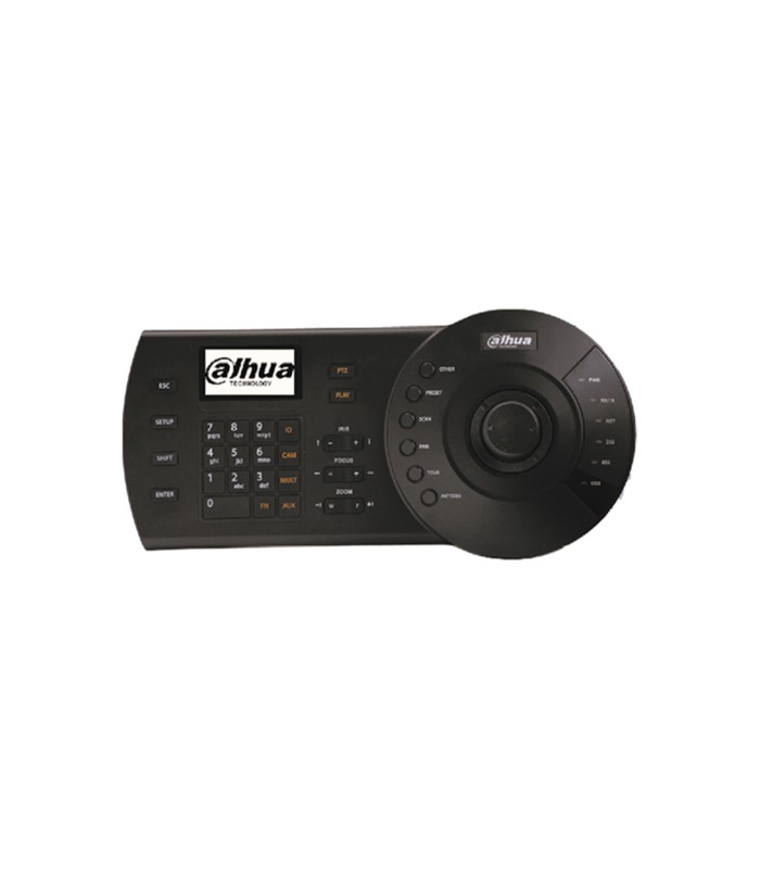 Клавиатура для управления: Высокоскоростной купол Dahua, Автономный видеорегистратор Dahua, Сетевой видеосервер. Связь: RS485, RS422 (зарезервировано), USB, RS232 и сеть. Функции: Трехмерный джойстик для управления функциями PTZ, Предустановленное положение, автоматическое сканирование, автоматическое панорамирование, автоматический обход и шаблон. Вспомогательные функции: Советы по использованию экранного меню и действий пользователя, подключение к SmartPSS или платформе DSS через USB