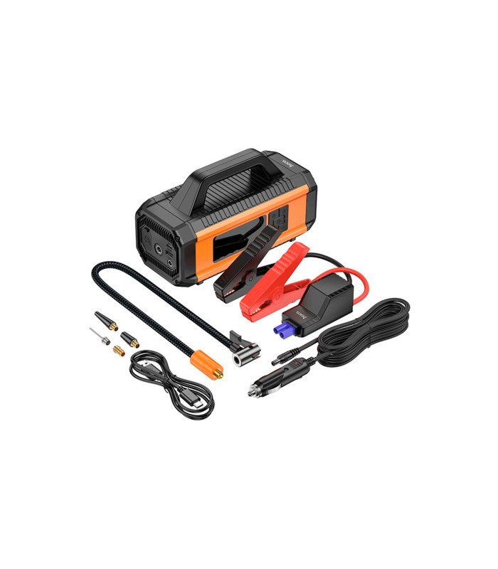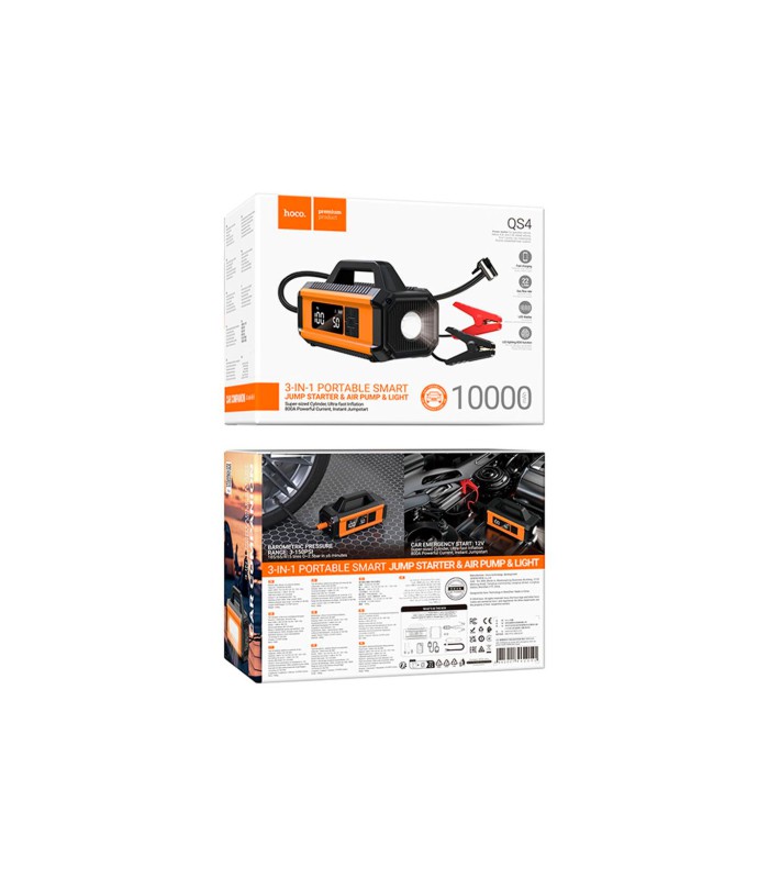Пусковой прибор для аккумулятора автомобиля+ насос HOCO QS4, Power Bank 10000mAh, 2xUSB+ Type-C, корпус пластик, Box