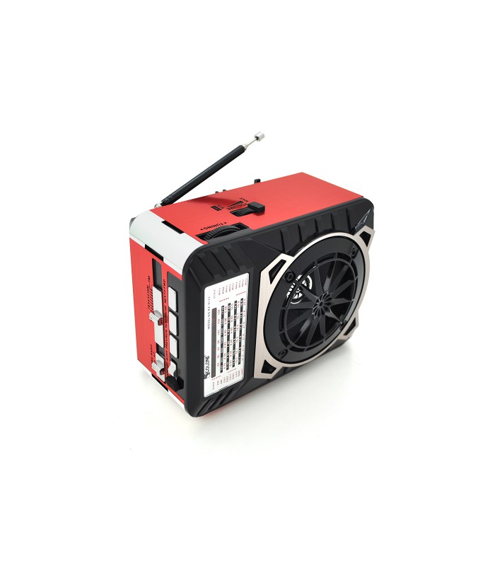 GOLON RX9122 - радиоприемник с FM, AM, SW тюнером, боковым фонариком, встроенным аккумулятором, имеет разъемы для SD-карт и usb флешек для проигрывания музыки в форматах mp3.