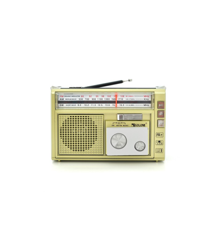 Радиоприемник GOLON RX382 - это стильный и функциональный радиоприемник с LED подсветкой. Он оснащен AM/FM радио и имеет различные входы для подключения microSD, USB и AUX. Питается он от 220В+2*LR20 батареек. Корпус приемника выполнен из прочной пластмассы в черно-золотом цвете.