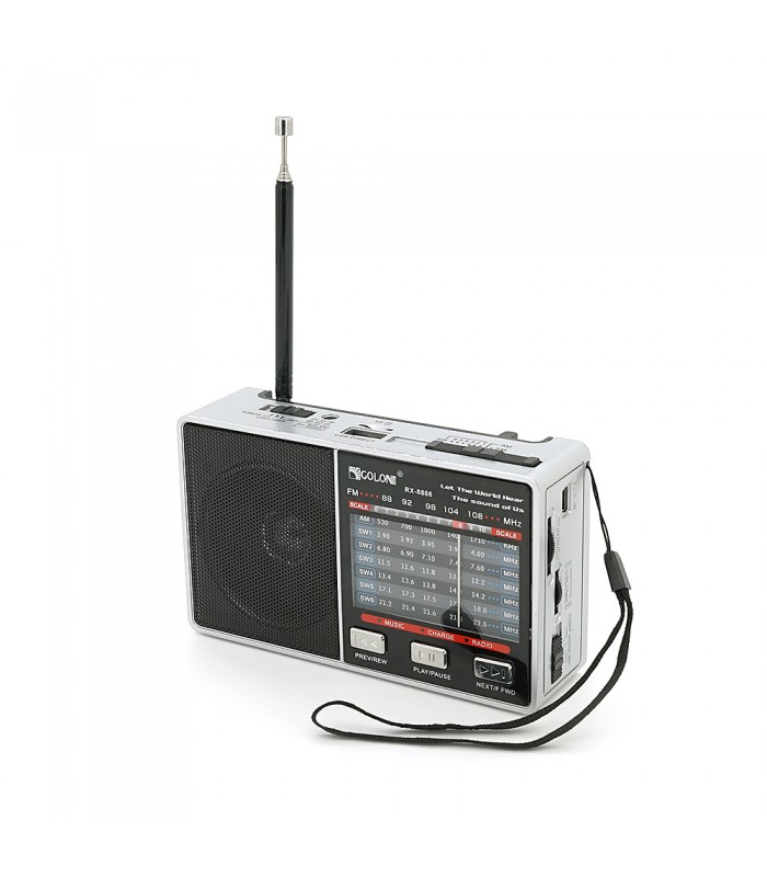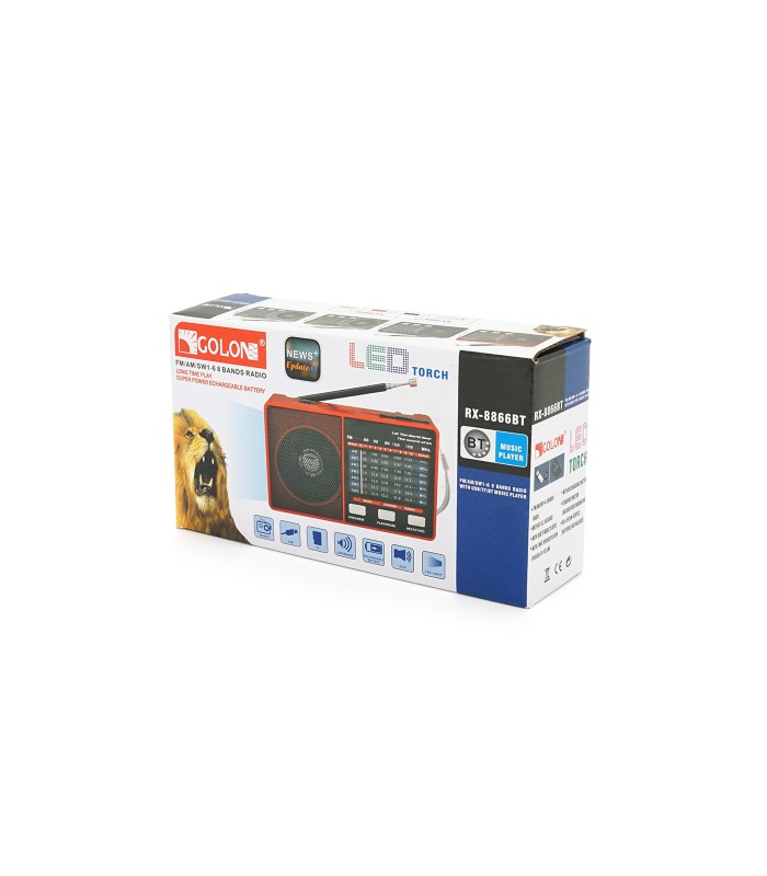Радиоприемник GOLON RX-8866, LED, 2x3W, FM радио, корпус пластмасс, Mix Color, BOX
