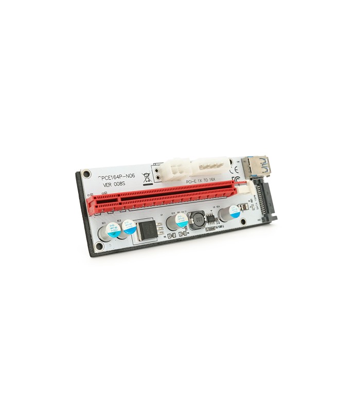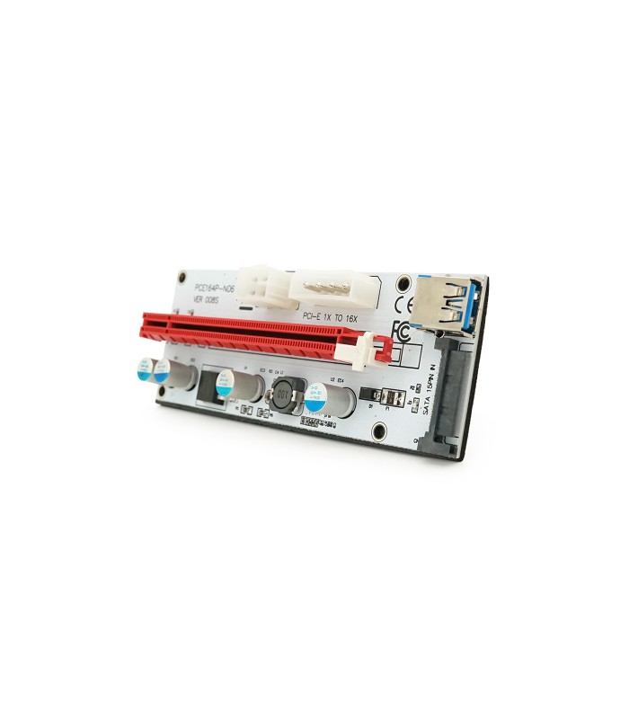 Плата PCE164P-N09 (V008S-Plus) Riser PCI-EX, x1&gt,x16, USB 3.0, DC12V(Molex&PCI-E/6pin), SATA/15pin, конденсаторы 270, VER008S,