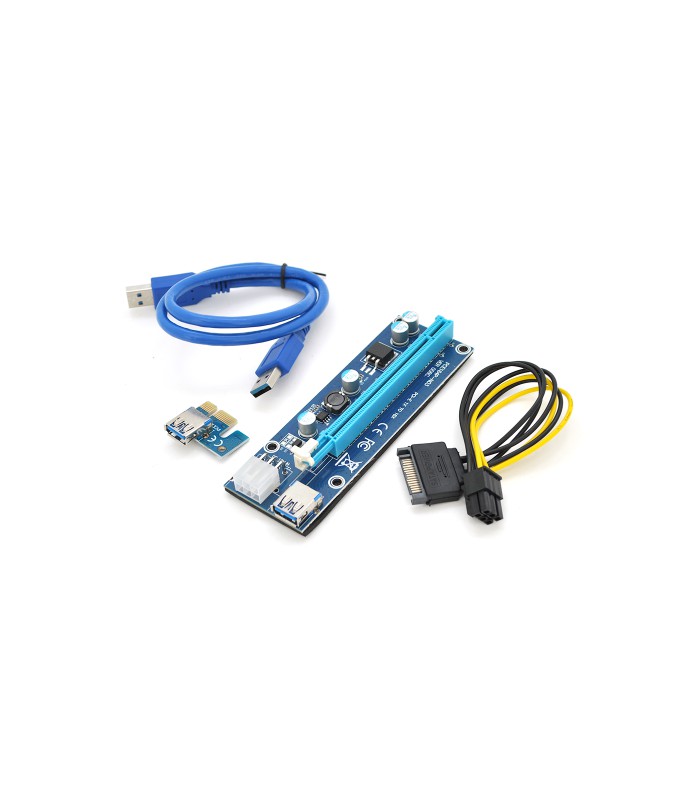 Riser PCI-EX, x1&gt,x16, 6-pin, SATA&gt,6Pin, USB 3.0 AM-AM 0,6 м (синий) , конденсаторы 270, Пакет