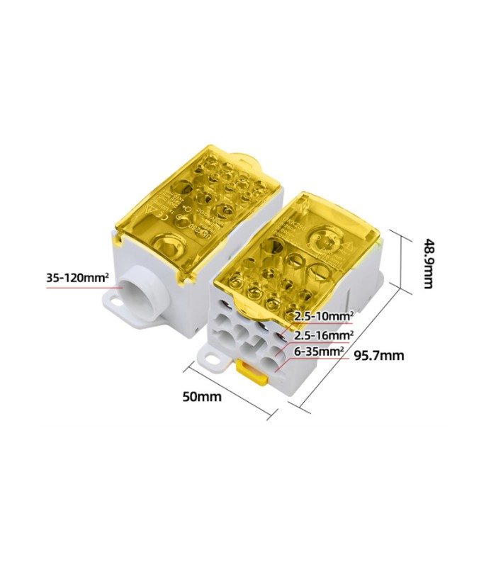 • Конфигурация входов/выходов: 1 вход на 120 мм², 11 выходов (2х35 мм² + 5х16 мм² + 4х10 мм²)