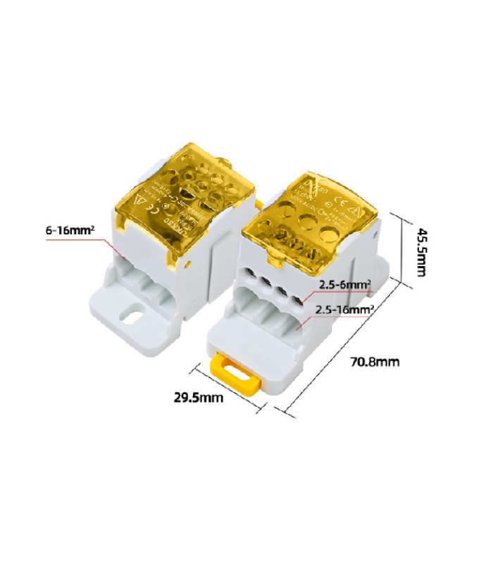 • Количество выходов: 6 (4 под сечение 6 мм² + 2 под сечение 16 мм²)