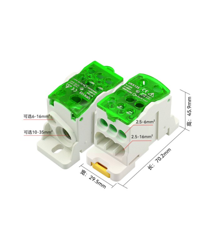 Параллельный разветвитель-сплиттер проводов UKK125, 6 выходов(латунь)6-2,5*16мм2 *1-10-35мм2 *1-6-16мм2, AC690V, 125А, 70,8*45,9