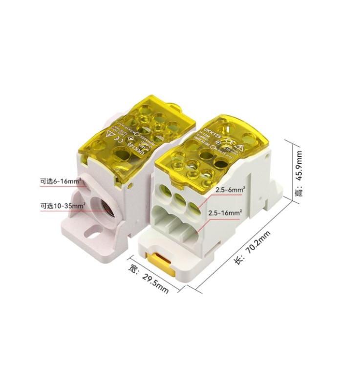 Параллельный разветвитель-сплиттер проводов UKK125, 6 выходов(латунь)6-2,5*16мм2 *1-10-35мм2 *1-6-16мм2, AC690V, 125А, 70,8*45,9