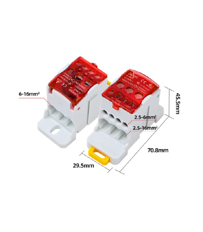 Параллельный разветвитель-сплиттер проводов UKK80, 6 выходов(латунь)2-2,5*16мм2 *4-2,5-6мм2 *1-6-16мм2, AC690V, 80А, 70,8*45,5мм