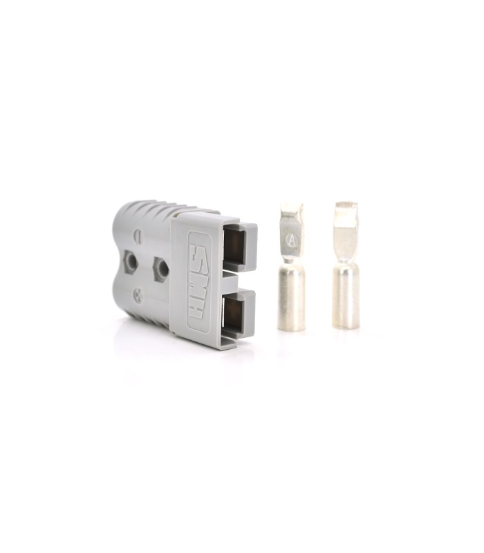 Мощный силовой разъем питания типа 'Anderson' для соединения-разъединения систем питания, батарей, аккумуляторов в прицепах, трейлерах, системах питания. Максимальное напряжение: 600В Максимальный длительный ток: 175А Материал контактов: медь, покрытая серебром. Сопротивление изоляции: более 500 МОм.