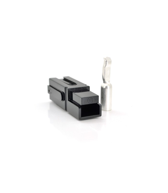 Мощный силовой разъем питания типа 'Anderson' для соединения-разъединения систем питания, батарей, аккумуляторов в прицепах, трейлерах, системах питания. Максимальное напряжение: 600В Максимальный длительный ток: 120А Материал контактов: медь, покрытая серебром. Сопротивление изоляции: более 500 МОм.