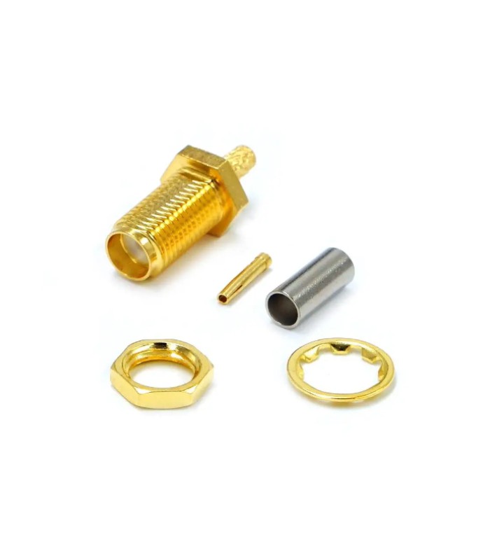 Разъем ВЧ SMA Female для кабеля RG-316 RG-188 RG-174 LMR100 SFF50-1 SFF50-1.5 и аналогов с наружным диаметром изоляции до 2.52 мм и центральной жилой 0.5 мм. Центральный пен монтируется на центральный провод кабеля методом пайки. Разъем зажимается на кабеле обжимным инструментом (кримпером).
