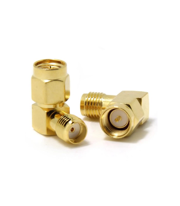 Угловой 90° переходник (Г-образный) имеет разъем SMA Male (папа) с одной стороны и SMA Female (мама) – с другой.