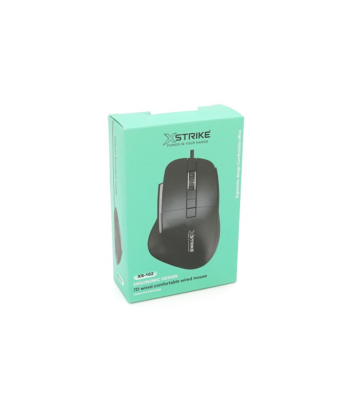 Мышь проводная XSTRIKE XS-102, 1200/1800/2400/3600DPI, кабель 1,5м, Black, Box