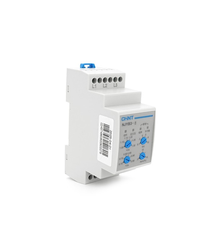 Реле контроля фаз CHINT NJYB3-8 AC380V, 3F3P, Защита U+(1,05~1,3)*Us/U-(0,7~0,95)*Us,Задержка 0,1~10с,обрыва/последовательности