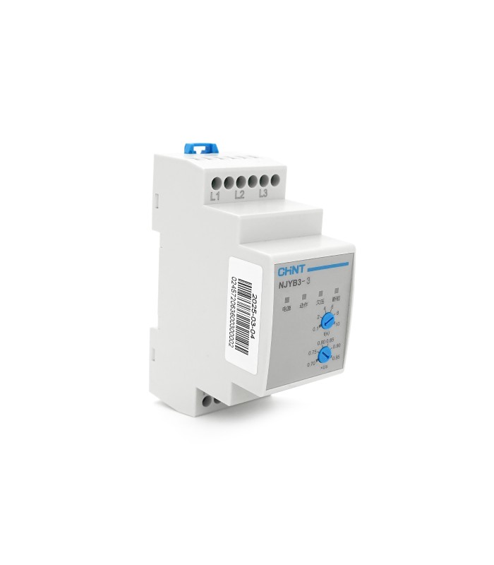 Реле контроля фаз CHINT NJYB3-3 AC380V, 3F3P, Защита U- (0,7~0,95) *Us, Задержка 0,1~10с, Защита обрыва фаз, Ue240/415V, Ie0.75/