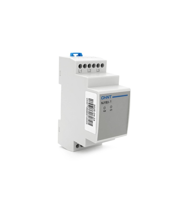 Реле контроля фаз CHINT NJYB3-1 AC380V, 3F3P, Защита обрыва/последовательности фаз, Ue240/415V, Ie0.75/0.47, 1CO+1NO