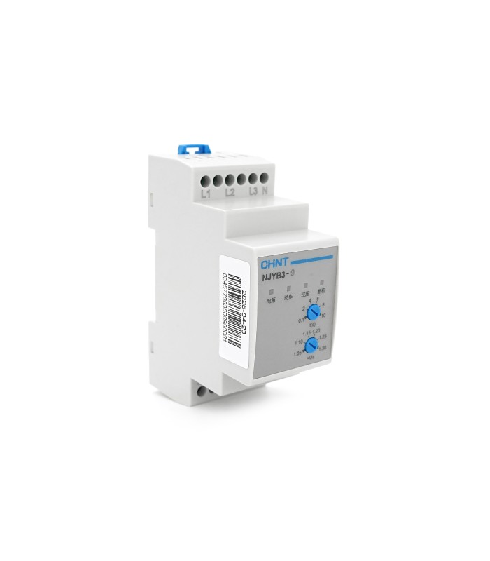 Реле контроля фаз CHINT NJYB3-9 AC220V, 1-2F4P, Защита U+ (1.05~1,3) *Us, Задержка 0,1~10с, Защита обрыва фаз, Ue240/415V, Ie0.7
